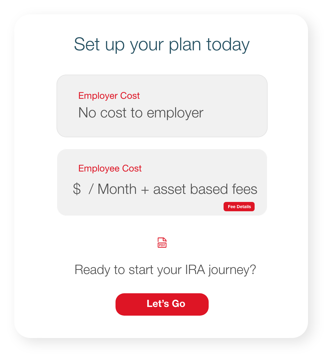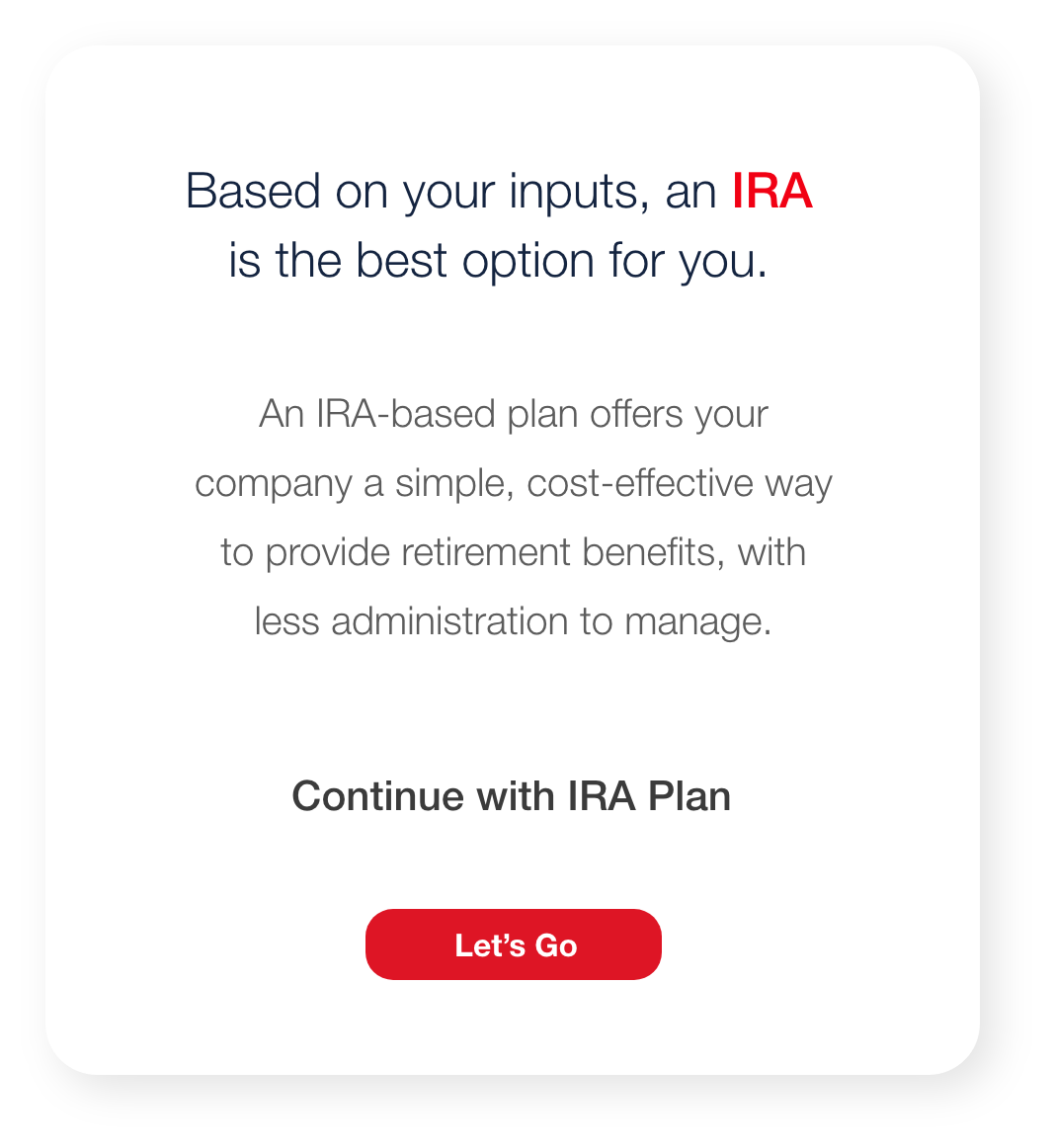 Employers start with a simple web-based questionnaire that guides them to the appropriate retirement solution.